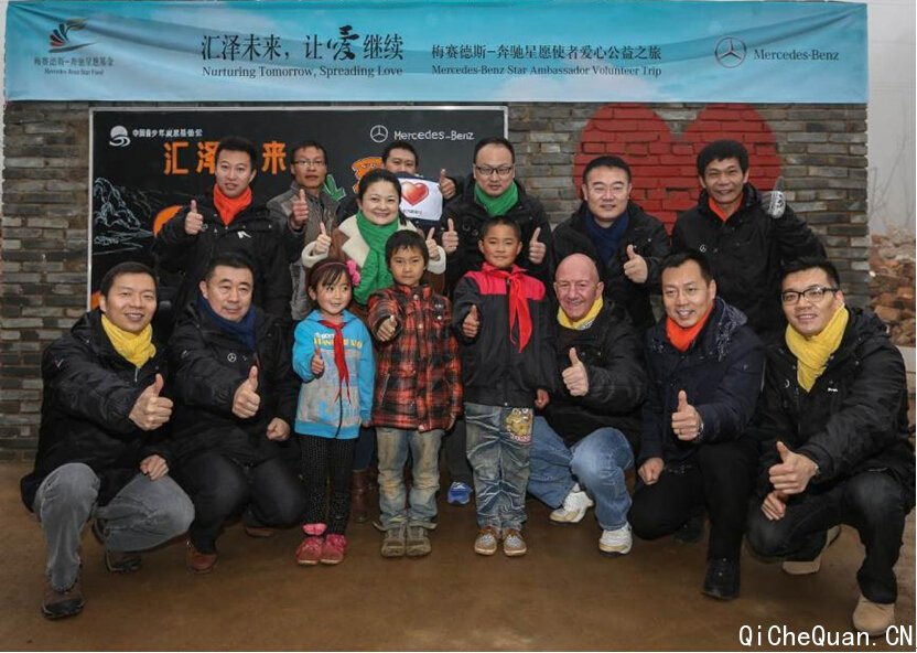 梅赛德斯-奔驰星愿使者们与浑水塘小学的小朋友们在爱心墙前合影留念