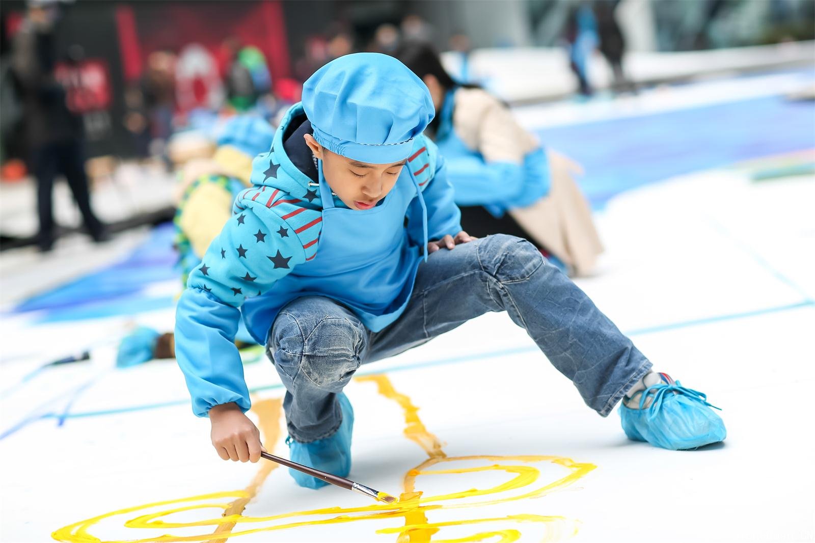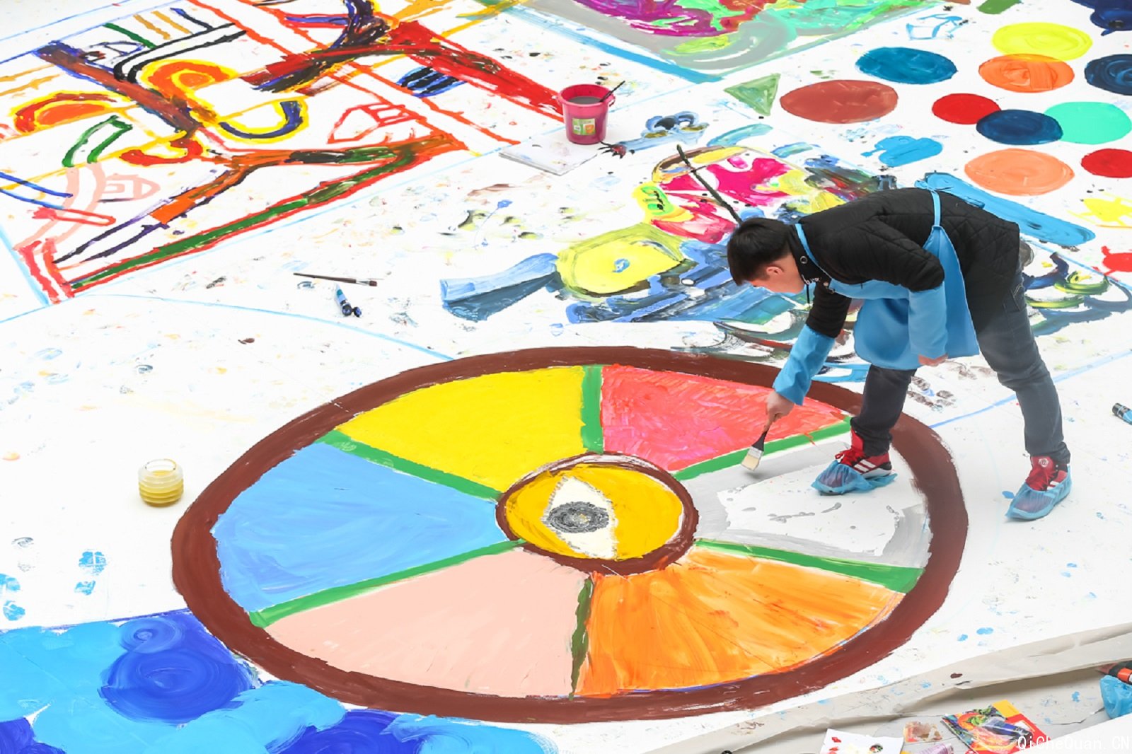 中国首个由自闭症孩子创作的城市巨幅地面涂鸦