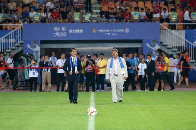 7月23日,由一汽-大众汽车有限公司(以下简称一汽-大众)鼎力赞助的广州恒大淘宝队与拜仁慕尼黑队的中德顶级俱乐部足球赛在广州天河体育场激情上演。这场国际友谊足球赛,是“2015拜仁中国行”的收官之战,它不仅是一场中德足球文化与技术交流的盛宴,也标志着一汽-大众践行企业社会责任,正式投身于发展中国青少年足球事业。