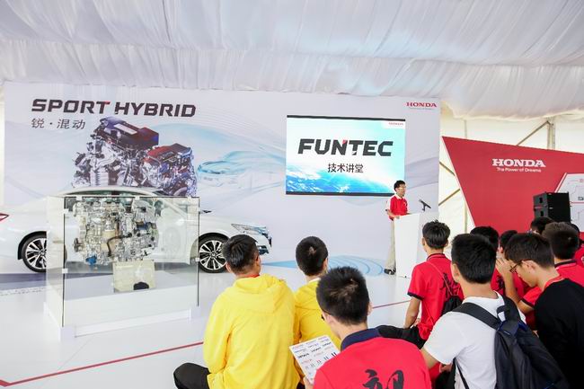 此外,大学、专科学校的最佳进步奖由贵州大学的黔途车队(燃油)和广东交通职业技术学院的广交梦之箭(EV)获得,车队通过技术的改进,成绩较去年大幅提升;企业的最佳进步奖由广汽本田汽车有限公司的挑战壹队(燃油)和本田摩托车研究开发有限公司的闪电之星(EV)获得。最佳新秀奖由韶关学院的韶风车队(燃油)和南京航空航天大学金城学院的零度车队(EV)摘得。通过微信H5投票评出的最佳人气王,则分别被龙岩学院的龙之心1队(大学、专科学校最佳人气)、东风本田汽车有限公司的速影车队(企业最佳人气)囊括,凝聚各车队创造力和智慧的海报和视频获得了极高的关注。 在汽车技术领域,Honda同样以梦想为动力,不断向革新型技术发起挑战:如传奇跑车NSX、全球最高效率的双电机混合动力系统,以及连接未来自动驾驶的Honda SENSING主动安全技术等。在赛场的先进技术展示区,观众可以近距离观看Honda环保先进技术的SPORT HYBRID(锐·混动)车型及其系统的工作原理。它可以在电动、混合动力、发动机三种驱动模式之间平顺切换,节能优势突出,实现了同级别全球最高水平的燃油经济性。搭载了该技术的Honda车型在今年实测中跑出了一箱油1400公里,百公里耗油量4.2L的真实成绩。