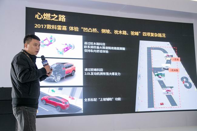 科雷嘉为开拓进取且对生活充满热情的年轻消费者量身打造。其超越同级车型的科技和主被动安全配置,完美展现了东风雷诺“安心畅行”的品牌内涵。在“心燃之路”环节,体验者驾驶科雷嘉轻松通过凹凸桥、侧坡、枕木路和驼峰四项科目。科雷嘉带LOCK功能的四驱系统具有可选的 2WD、AUTO或LOCK三种模式。AUTO模式可以根据车辆行驶状态及路况,自动实时调整前后轮最佳扭矩分配比例;专业级LOCK模式下,可将前后轮扭矩分配固定在50:50,确保车辆在恶劣路况下的仍可具备强大通过能力。而欧系调校的底盘悬架等产品优势,能够帮助科雷嘉在遭遇各种复杂路况时轻松过滤路面颠簸,释放运动激情。此外,全系标配的“上坡辅助”系统,则让“半坡起步”时的手忙脚乱变成了历史。