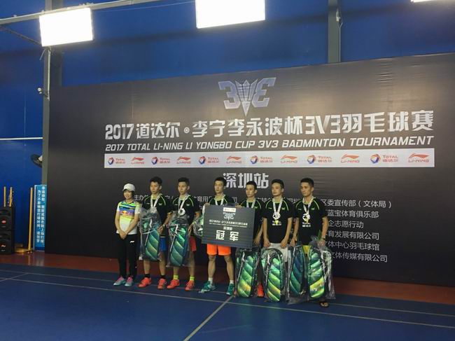 经过两天激烈的追逐,最终3v3团体赛冠军由深圳明羽康泰羽毛球队获得。