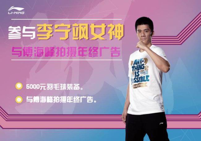 赛事现场,李宁飒女神评选活动也在火热进行中,北京站飒女神也在同步招募。在年终总决赛上评选出的2017年度李宁飒女神将有机会与奥运冠军傅海峰拍摄品牌广告。