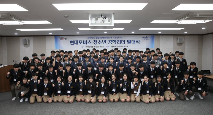 现代摩比斯全新社会公益活动“青少年工学领袖”建队仪式于上月31日在首尔大学举行。当日,入选的90名高中生还接受了讲师培训,以便在建队仪式后的一个学期内,为“青少年工学教室”进行科学授课。