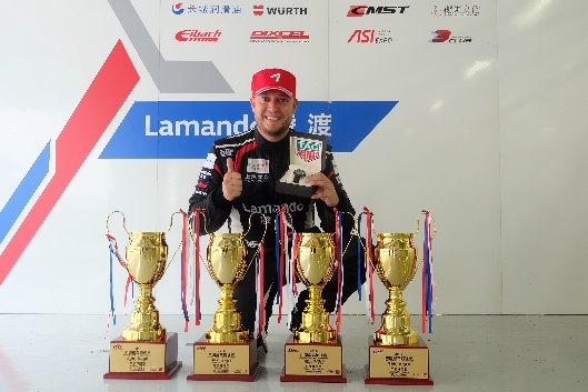两天的正赛在阵雨天气下进行,首日下午更是遭遇突然暴雨,超半数赛车在赛道上失控,比赛一度中止,而上汽大众333车队的外籍车手Robert Huff顽强领跑,最终驾驶着受损赛车拿下赛季首冠。第二个比赛日,Robert Huff依抽签程序第八位发车,但比赛开始不久就上演精彩超车大戏,三圈之后便来到第一的位置,最后以冠军完赛。队友张臻东也在激烈争夺中取得第四名的好成绩。
