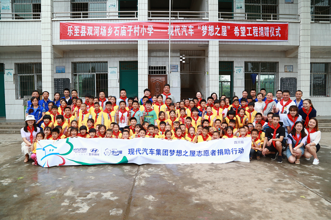 5月17日,第54期现代汽车“梦想之屋”公益活动在四川省资阳市乐至县双河场乡石庙子村小学举行。现代汽车(中国)投资有限公司、北京及四川青少年发展基金会、资阳当地北京现代4S店车友代表及师生共同参加了本次捐赠仪式。