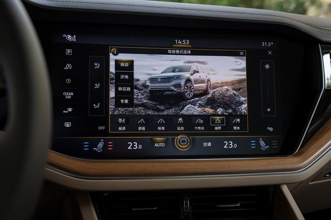 全新一代途锐依然标配4MOTION恒时四驱系统,8种驾驶模式任君选择,包括“公路驾驶模式”下的经济、舒适、标准、运动、个性共计5种模式,以及“越野驾驶模式”下的雪地、自动越野、专业越野3种模式。此外,全新一代途锐的锐智版车型在“越野套件”的加持下,另有沙地和碎石2种模式,共计达到10种驾驶模式。同时,新增的车辆底护板还为全路况驾驶提供了多一重保障。
