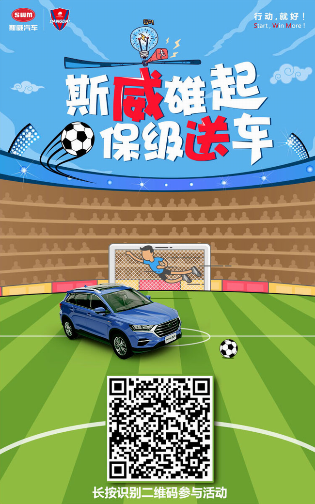 当个人获取助威能量不足300点,你可以转发加油助威接力页面给你的好友或是朋友圈,求助好友接力为重庆斯威加油助威。直至能量池达到300点,参与者即可获取本次“斯威雄起·保级送车”的个人抽奖编码,进入“斯威锦鲤”候选人名单,参与最后大奖“青年座驾”斯威G01终身使用权的抽奖,有机会免费领取一台斯威G01 1.5T 6AT 智up回家。