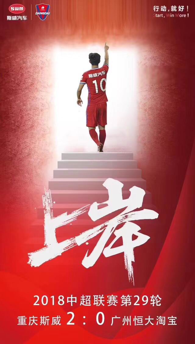提及11月7日斯威对恒大这场比赛,于开赛前的下午,斯威汽车就在球场外的五环广场上发起了“斯威雄起,保级送车”的线下小游戏活动,吸引了大量球迷前来参与。无论是气势上还是战术上,都仿佛给予了重庆斯威战胜广州恒大的力量,最终实现保级,可谓重庆锦鲤也。