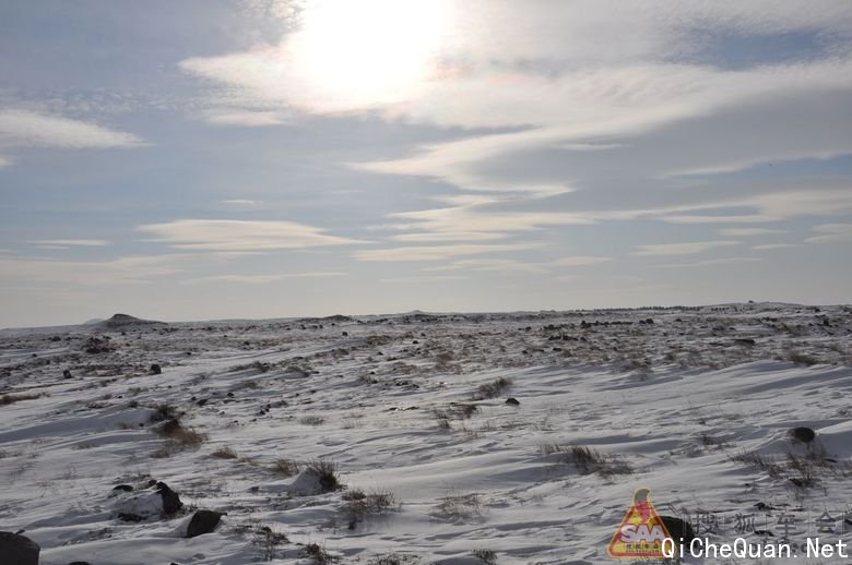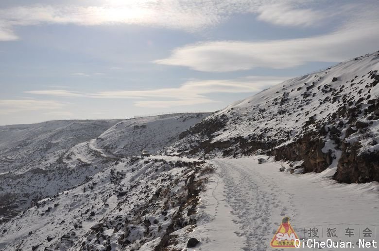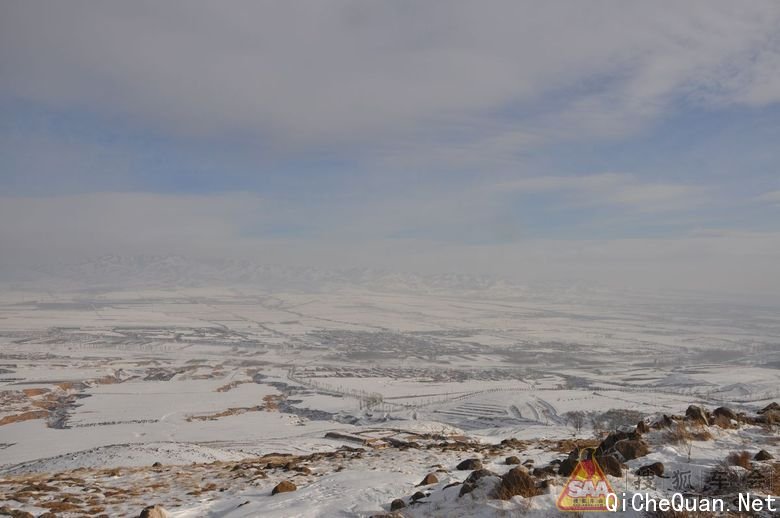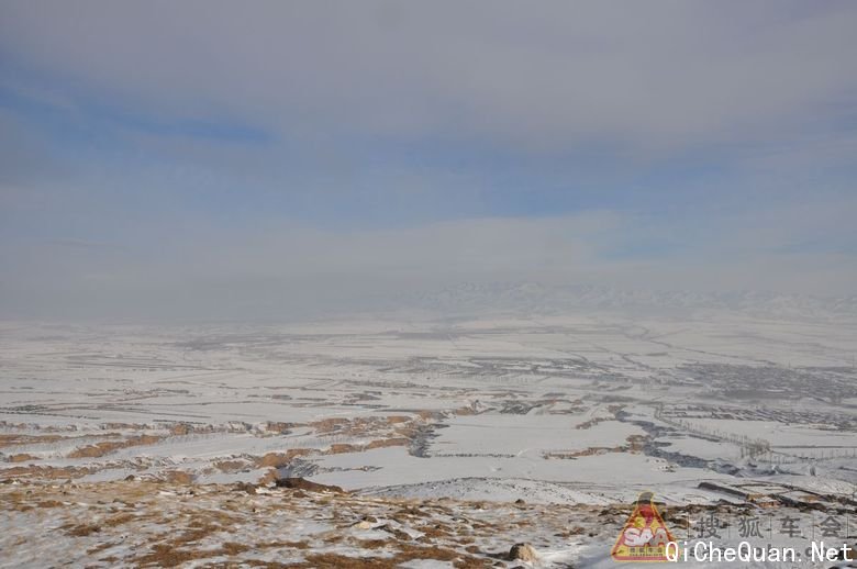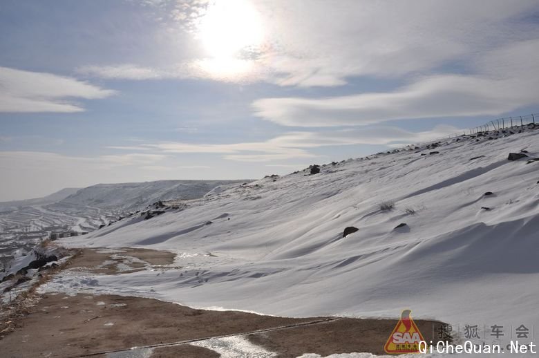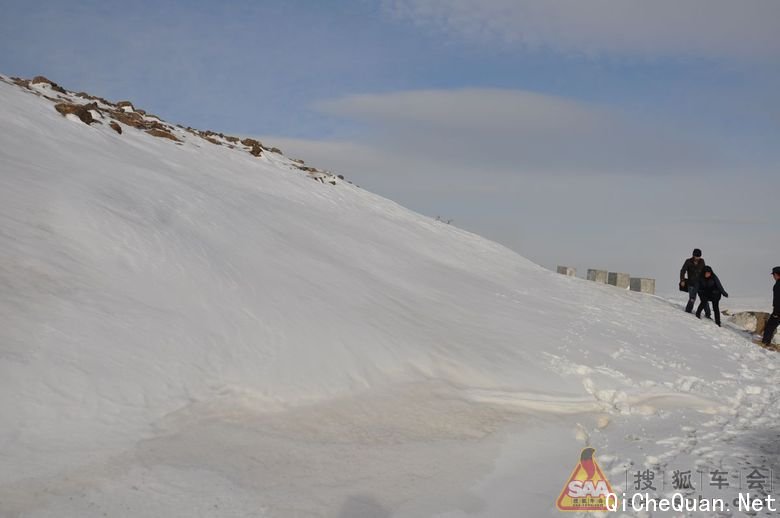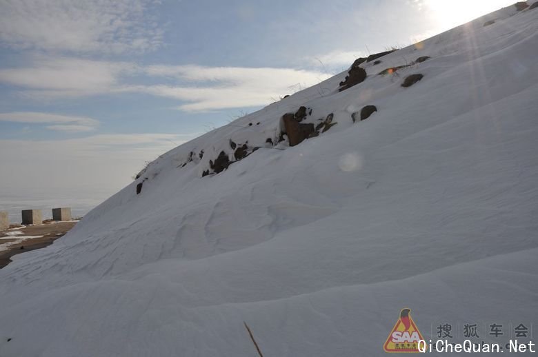 很遗憾,朋友的Q5没能登上更高的地方,路太滑了!我的90多转了几道弯,在登顶前300米也无法前行,整个路被风雪覆盖,倾斜角度太大,最终下车步行登顶。奇妙的是,登顶后的山居然像平原,诺大的山顶像个巨大的演武场。朋友介绍证实了我的猜测。