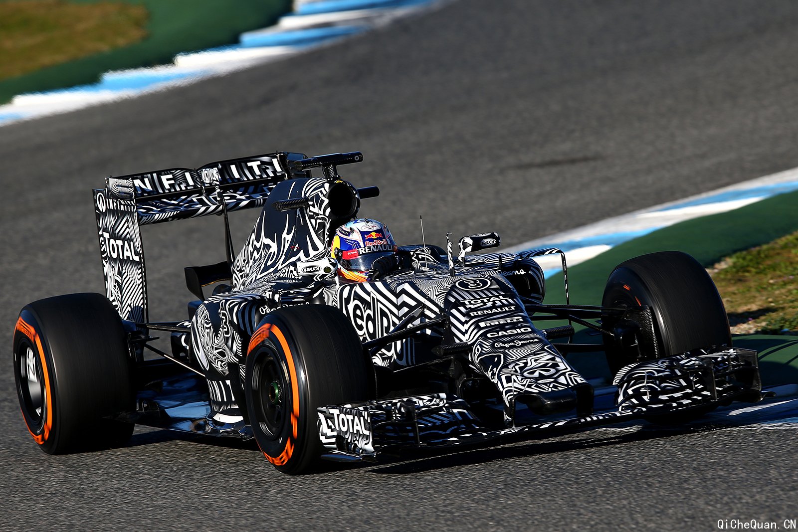 近日,2015赛季F1第一轮季前测试在西班牙赫雷兹赛道激情上演,F1英菲尼迪-红牛车队全新战车RB11黑白迷彩测试涂装成为了赛道上瞩目的焦点。此外,实力战将里卡多携新晋车手科维亚特完成了新车首秀,两位极具活力的车手已为新赛季做好了充分的准备。