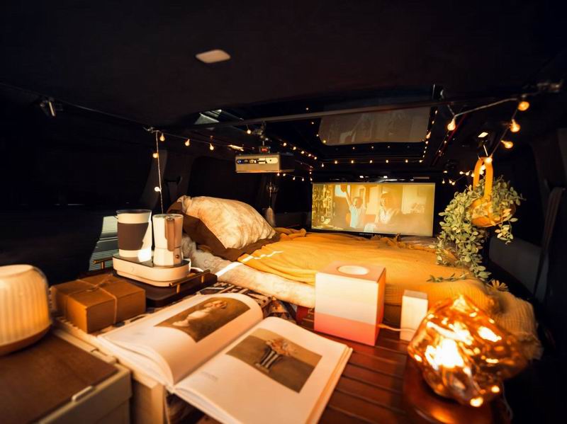 此外,该车配备-6℃至50℃宽温域冷暖冰箱,随时提供冷饮或热饮;后备箱顶部预留投影仪支架,结合21扬声器高端音响,可快速变身“移动影院”,挂起幕布即可享受亲子观影时光,让户外休憩与娱乐体验堪比居家舒适度。