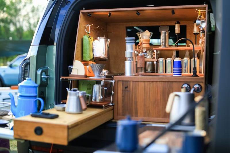 对此,福特智趣烈马同样提供了相应的场景解决方案。智趣烈马尾门可嵌入电磁炉,并集成置物空间和承重桌板,不用额外架设桌板就能将尾门变为专属咖啡制作区,用户还可以利用小料台放置各类咖啡器具。福特智趣烈马甚至还在尾门做了防滑处理,降低咖啡泼洒风险。诸多贴心细节让户外手冲咖啡更加轻松简单。