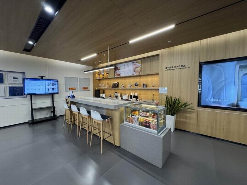 试驾结束回到店里,我顺便逛了逛与展厅相连的客户休息区。这里氛围更显闲适,大厅里摆放着舒适的沙发,旁边还有一张标准的台球桌,往里走则设有独立的VIP休息室。看得出,这里是为了让客户能从容地休息或等待,而非枯燥地打发时间。